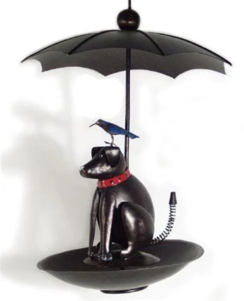 Complete with hanging hook and chain, unique Black Lab Hanging Bird Feeder adds flighty charm to the garden! Hand crafted powder coat metal construction ensures many seasons of use and enjoyment… for you and feathered friends alike!