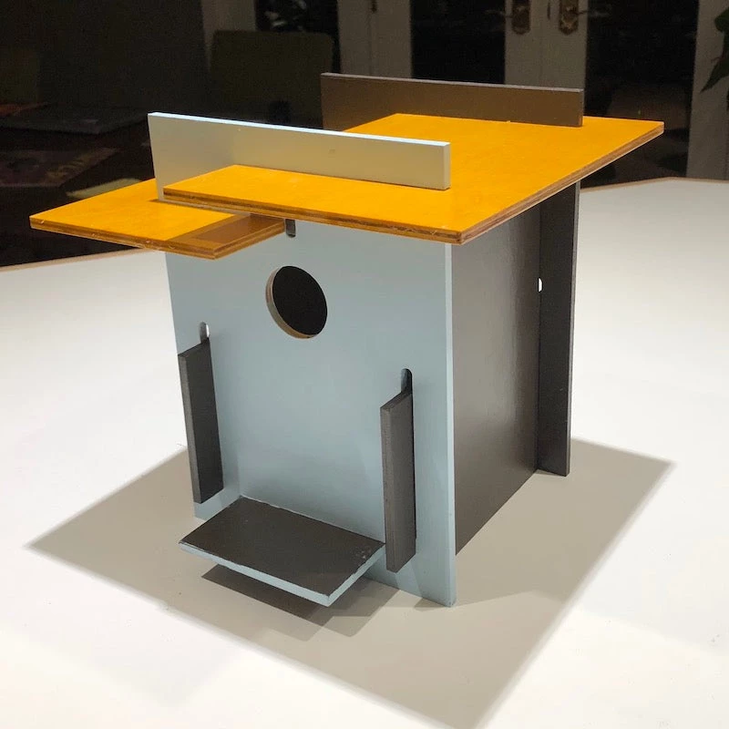 Innovative birdhouse kit is fun to assemble, and totally functional. Box For Birds wooden bird house kits provide real nesting sites and swell roosting spots too! Unlike the original Box for the Birds, this modern design is based on the famous Frank Lloyd Wright House. With it’s clean lines and tiered roof, this cool birdhouse kit compliments any setting with it’s simplicity.