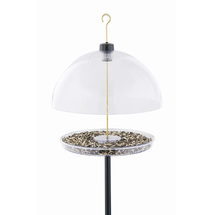 15-inch diameter dome protects seed from weather and shelters feeding friends. UV stabilized poly-carbonate won’t yellow with age.
