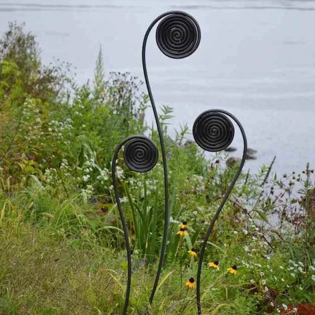 Steel fiddleheads mimic unfolding garden ferns that add a magical touch to the landscape.