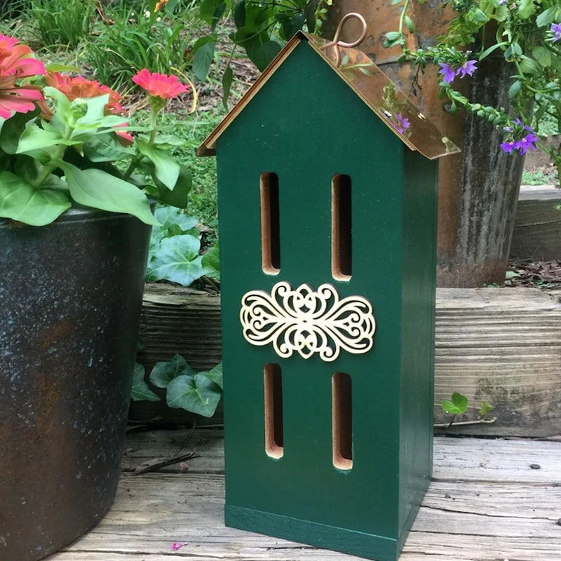 Remove roof to place a small branch inside for butterflies to rest upon. Adding a leaf mister in the garden helps create the ultimate habitat for winged wonders. Choose native host and nectar plants for a thriving butterfly garden!